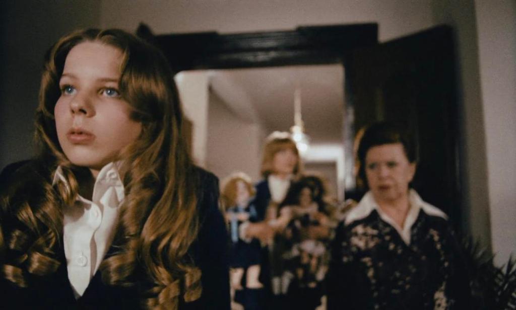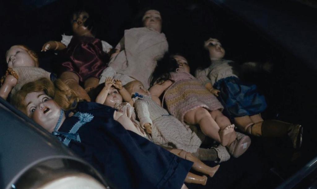 影片并未交代安吉拉的年龄,从小演员的形象来看,差不多是十二三岁。可是上述话语中的冷静与悲凉,岂是初入青春期的小女生能够承受的?从安吉拉的话中可以推知,是父母先后出轨的行为中包含着的失望与放弃,让女孩接收到了他们对自己的恨意。安吉拉的布娃娃们也向观众间接透露了女孩的内心感受。这群数量众多的布偶在镜头里总共出现三次,分别是家中、家庭教师的汽车后备箱,以及别墅里安吉拉的卧室地板上。它们绝非能让人愉悦的玩具,反倒是嘴巴大张、表情惊惧,让观众仿佛能在它们无声的脸上听见凄切的呼喊。而且观众会注意到,这些玩偶全都是女孩的样子,它们显然是安吉拉心中的自我形象。第二晚,母亲亦对管家婆流露了她对安吉拉的恨。“中国轮盘”游戏开始前,母亲提议随机分组,女孩说她已经分好了。安吉拉随后把自己、父亲、家庭教师和男仆分为一组,其余人一组。这时母亲对管家说:“她恨我们。”说这话时,母亲表情狰狞,眼里也似乎流露着仇恨的凶光。也就是说,母亲的话语听起来是在抱怨安吉拉,实际上却是在表达她对女儿的切齿之恨。